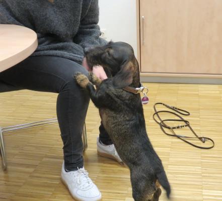 Kajta hatte schon auf uns gewartet. Schön öfters und zuletzt auf der Weihnachtsfeier hatte sie Frauchen erzählt, dass sie Dackel ganz toll findet. Und wir beide sind ja ganz prächtige Vertreter unserer Rasse.
