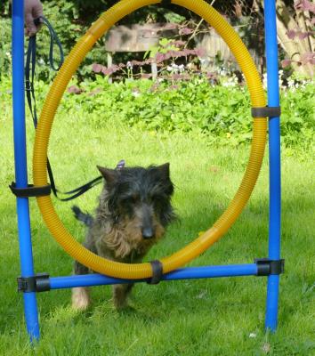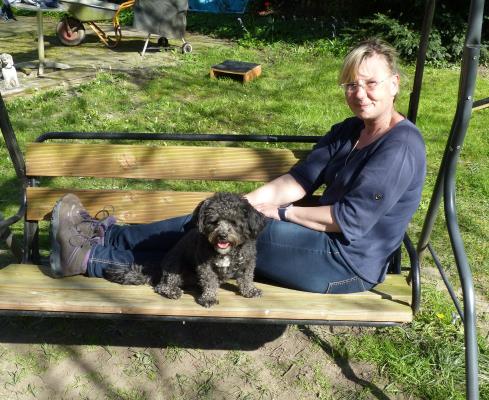 Es ist wirklich toll, den Garten als Trainings-Gelände zu haben. Denn Übungseinheiten von 10 - 15 Minuten sind für Frauchen machbar. Danach kann sie ja wieder entspannt auf der Schaukel pausieren.