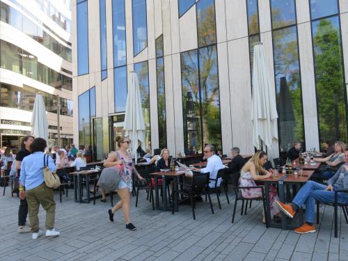 Am Samstag ging es - ohne uns Hunde und ohne Thomas - in die Innenstadt. Frauchen wollte Bixi die neue Düsseldorfer City zeigen. Rund um den Breuninger. In der Nähe des Hofgartens schlürften sie kalte und heiße Getränke und warteten auf Carina, die - na klar - bei Primark war. Schon bald zog es sie nach Hause - zu Thomas und uns Hunden.
